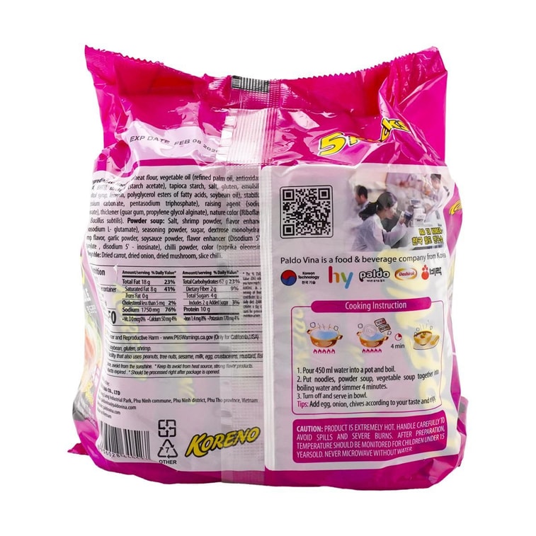 韩国PALDO八道 鲜虾汤面 速食方便面 100g*5连包
