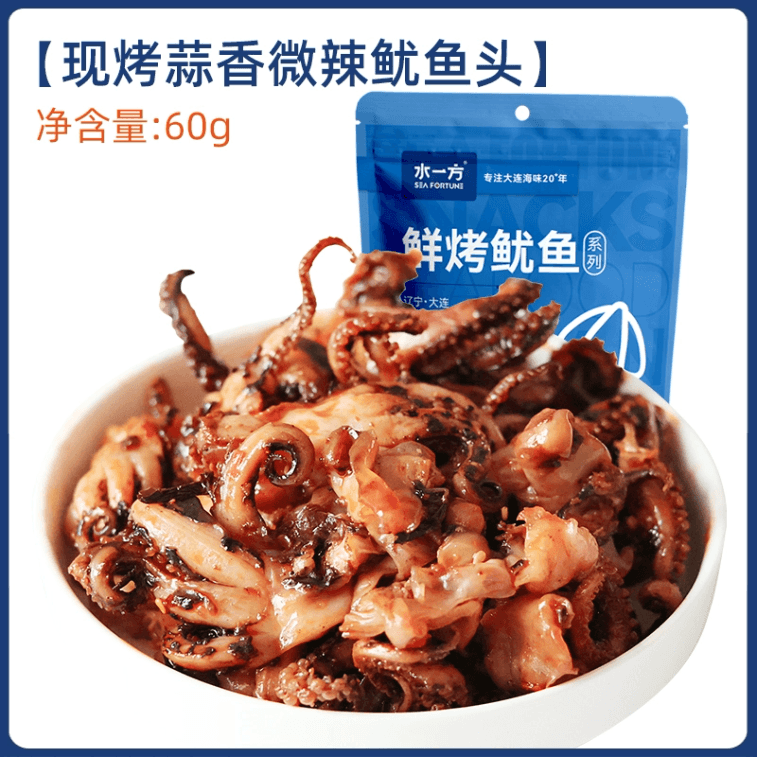 【中国直邮】 水一方 大连特产碳烤蒜香微辣鱿鱼头60g*1袋 | 亚米