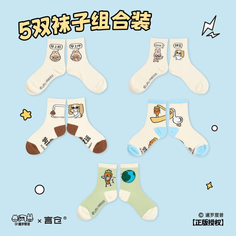 【中国直邮】言仓 暹罗厘普袜子生日礼物女生保暖实用送闺蜜情侣创意可爱 5双*1件