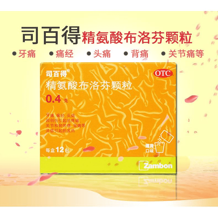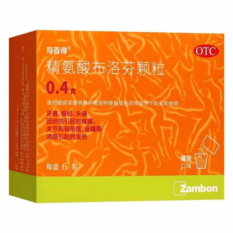【中国直邮】司百得精氨酸布洛芬颗粒牙痛痛经头痛关节痛发热0.4g*6包1盒