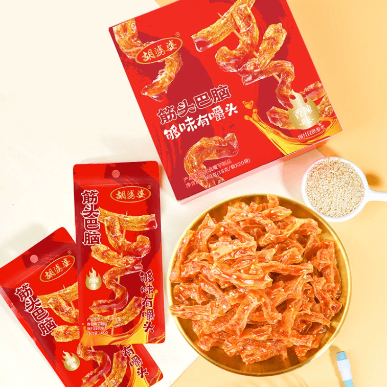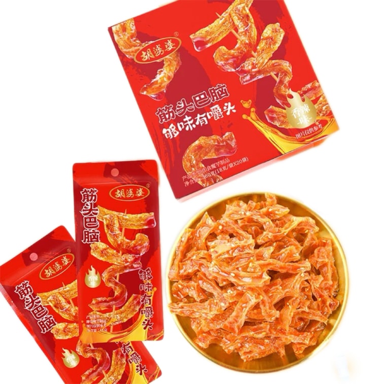 【中国直邮】 胡婆婆 四川开袋即食筋头巴脑魔芋解馋休闲小零食香辣味360g*1盒20袋