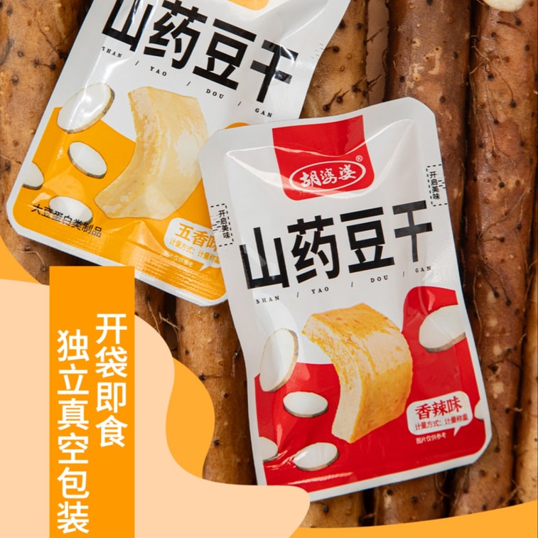 【中国直邮】 胡婆婆 四川 山药豆干 香辣&五香味 6包【鲜糯山药 鲜嫰Q弾】五香豆腐干休闲豆制健康美味零食 100g