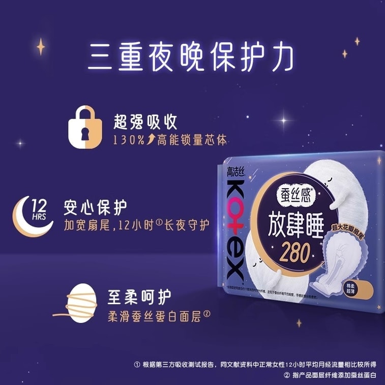 【中国直邮】 美国 高洁丝 蚕丝感放肆睡夜用防漏 280mm*16片/包