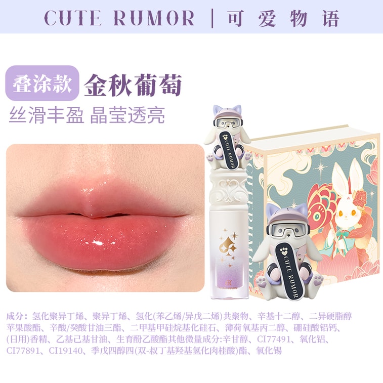 【中国直邮】 醉时光 滑雪兔护唇精华蜜礼盒装+大滑雪兔公仔 h04金秋葡萄 *1支 | 亚米