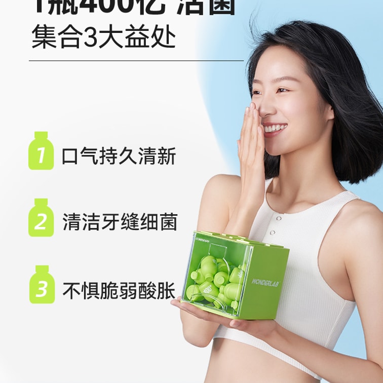 【中国直邮】万益蓝WONDERLAB 小绿瓶口腔益生菌 肠胃口气益生元冻干粉 30瓶