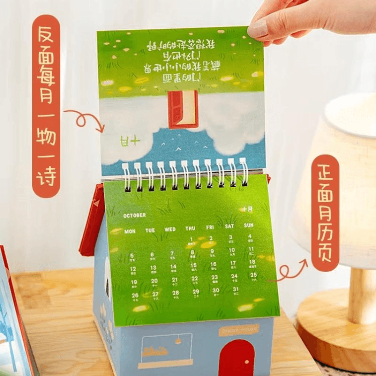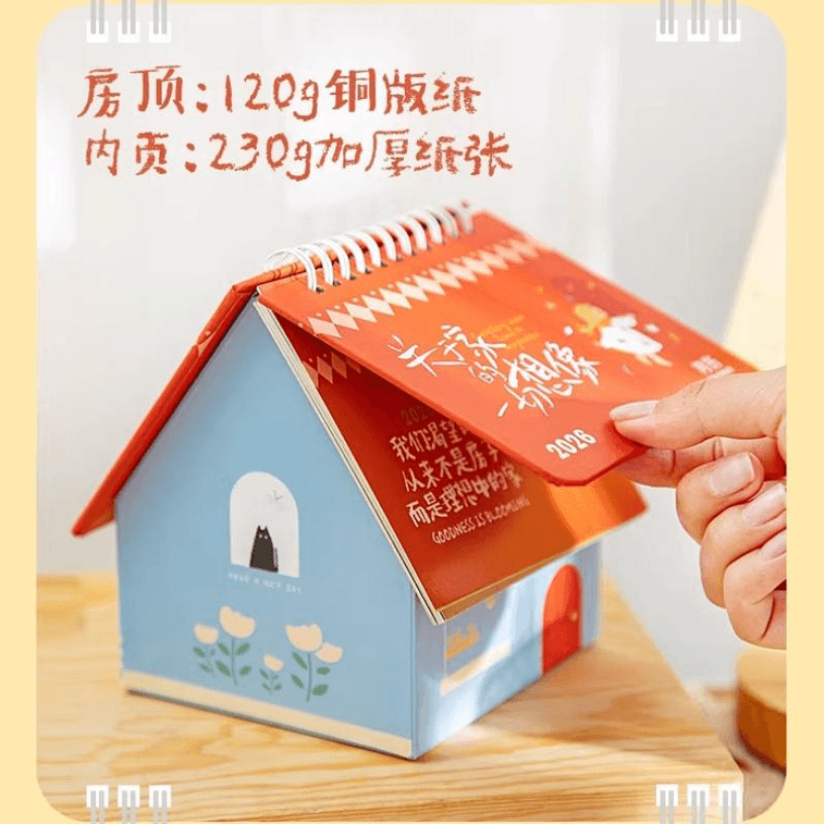 【中国直邮】 青禾纪 小房子月历高颜值收纳储物桌面摆件治愈系创意台历日历13*14cm*1盒