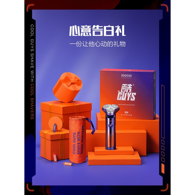 【中国直邮】素士超能自动剃电动剃须刀 S31 紫橙色