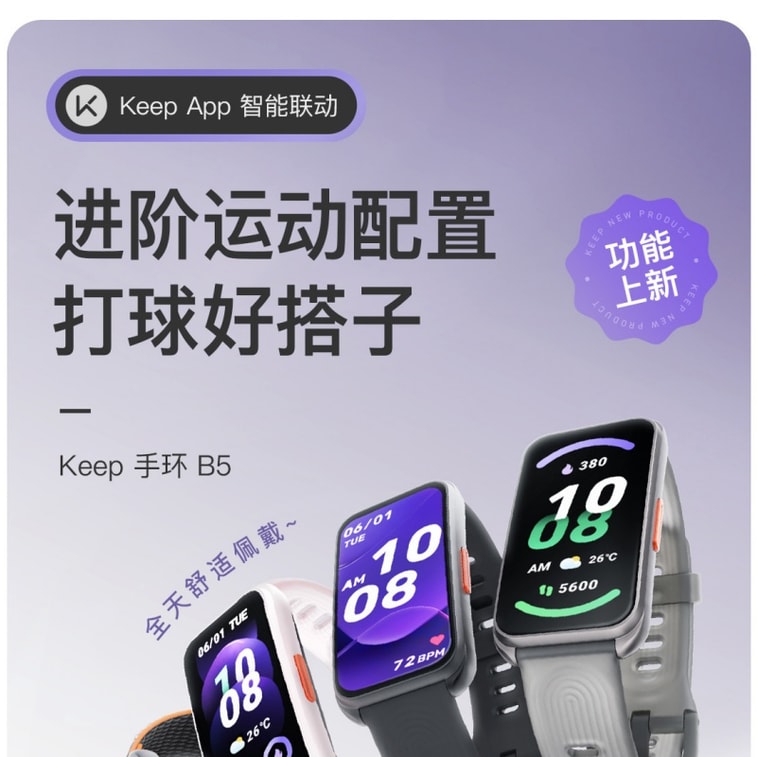 【中国直邮】 Keep 智能手环B5运动健康健身跑步防水心率睡眠游泳防水智能运动手环 粉色尼龙表带 一个装