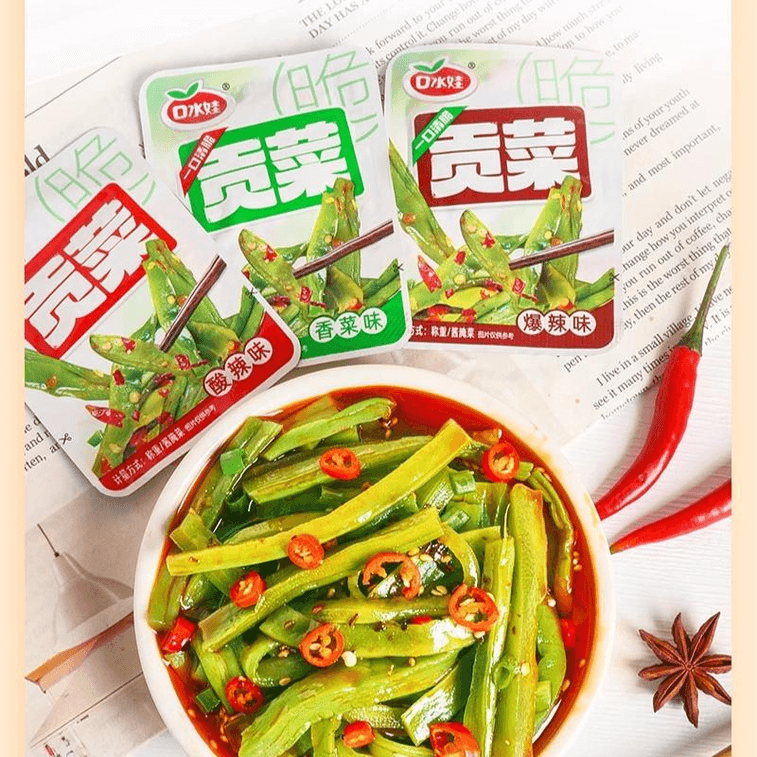 【中国直邮】 口水娃 零食即食贡菜爆辣味9g*30袋