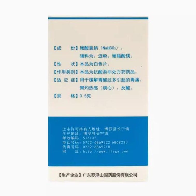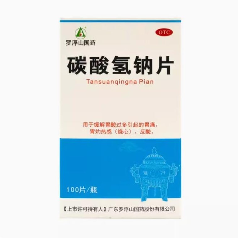 【中国直邮】 罗浮山国药 碳酸氢钠片100片/瓶 胃酸过多 小苏打片 碱性中和胃酸药胃痛