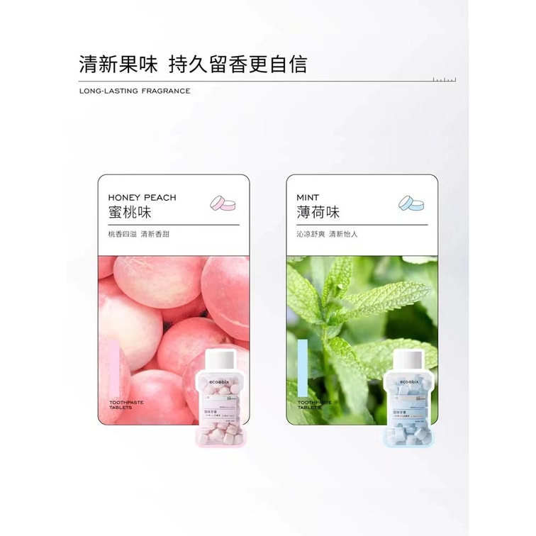 【中国直邮】白惜 固体牙膏洁牙片粒咀嚼片口嚼便携式清新口气清洁 薄荷45粒/瓶
