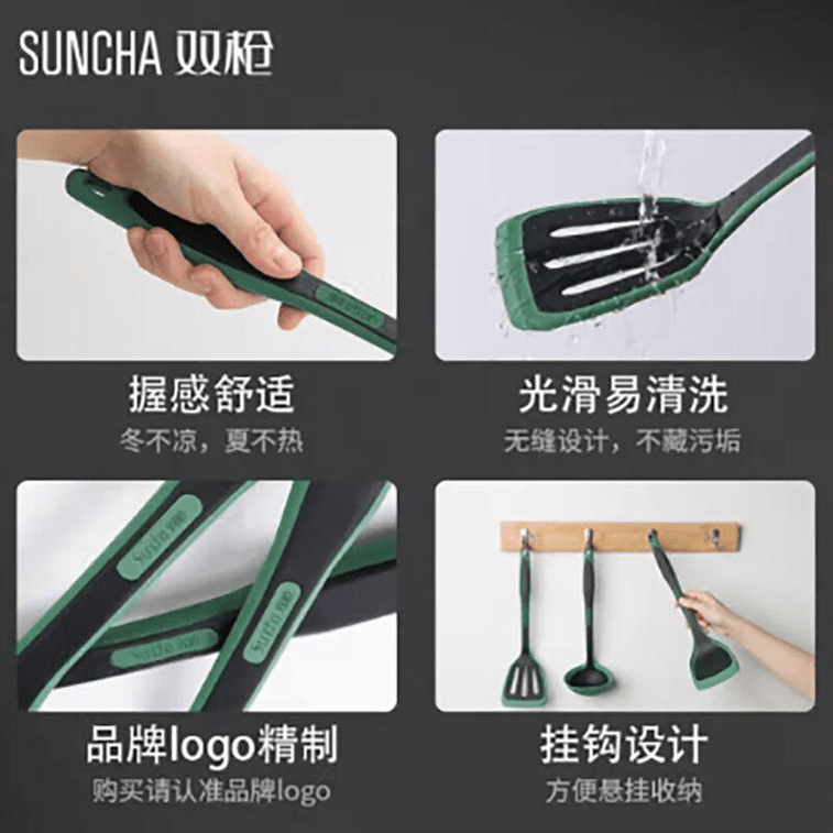 双枪 不粘锅专用硅胶锅铲炒菜铲子健康耐高温家用硅胶铲34*9cm