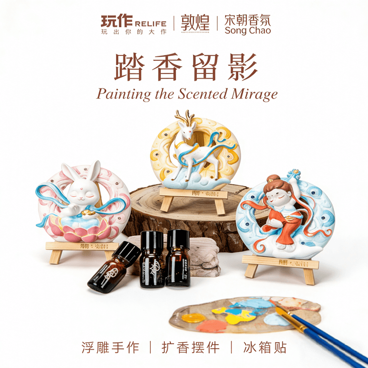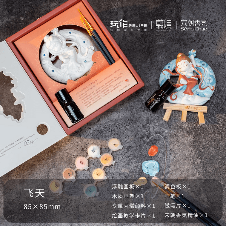 【中国直邮】 宋朝 敦煌手绘香氛彩绘 diy石膏香薰 室内高级摆件浮雕创意 飞天1套