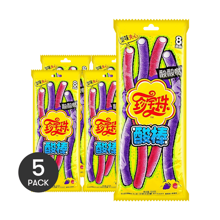 珍宝珠 酸棒啫喱糖 彩虹软糖 草莓&葡萄味 8条装 104g *5【5份超值装】【酸酸甜甜超惊艳!!】【罗森便利店同款】【童年回忆零食】
