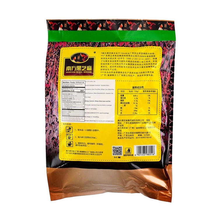 南方 黑芝麻糊 无糖 12小袋 600g【营养早餐谷物代餐】