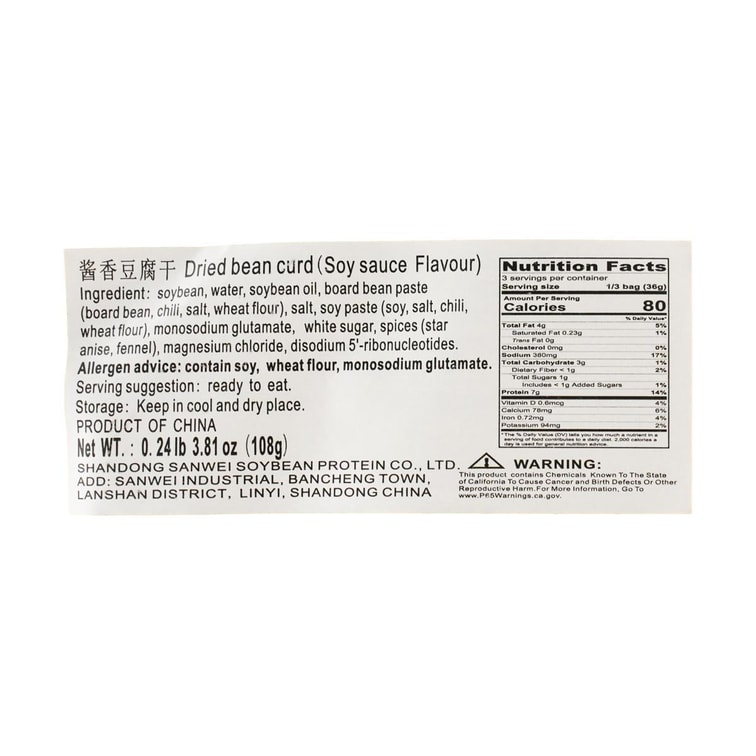 五贤斋 酱香豆腐干 108g