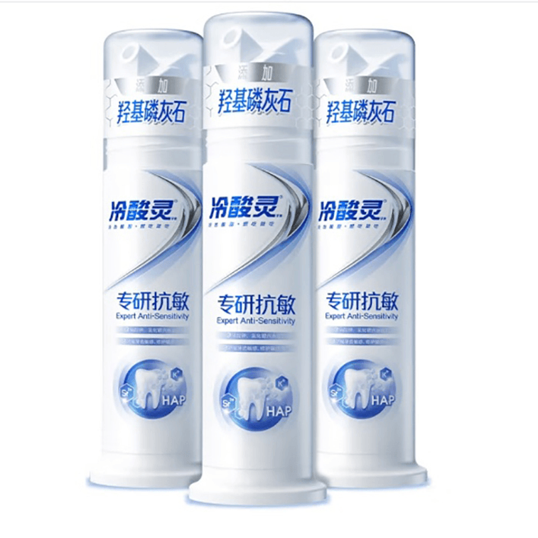 【中国直邮】冷酸灵专研抗敏泵式牙膏 羟基磷灰石成分 100g*3支 套装
