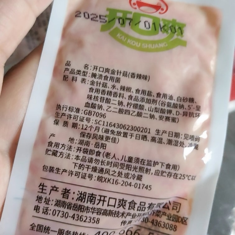 黑五大促【中国直邮】 开口爽 「香辣金针菇」开袋即食下饭菜 咸菜零食 麻辣榨菜小吃 大袋装 解馋佐餐 180g