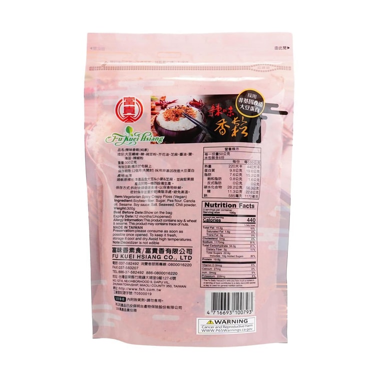 台湾富贵香 辣味香松 300g 【大豆蛋白素肉松】【可拌饭拌粥拌面】