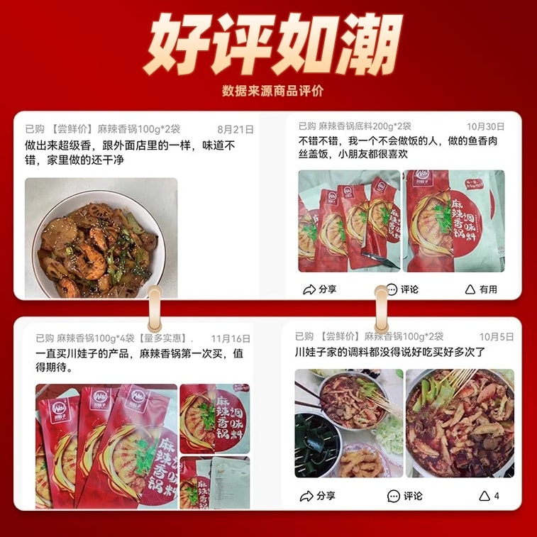 一袋酱料即可制作麻辣香锅、麻辣烫、干锅及多种川菜,还原地道复合麻辣鲜香风味。