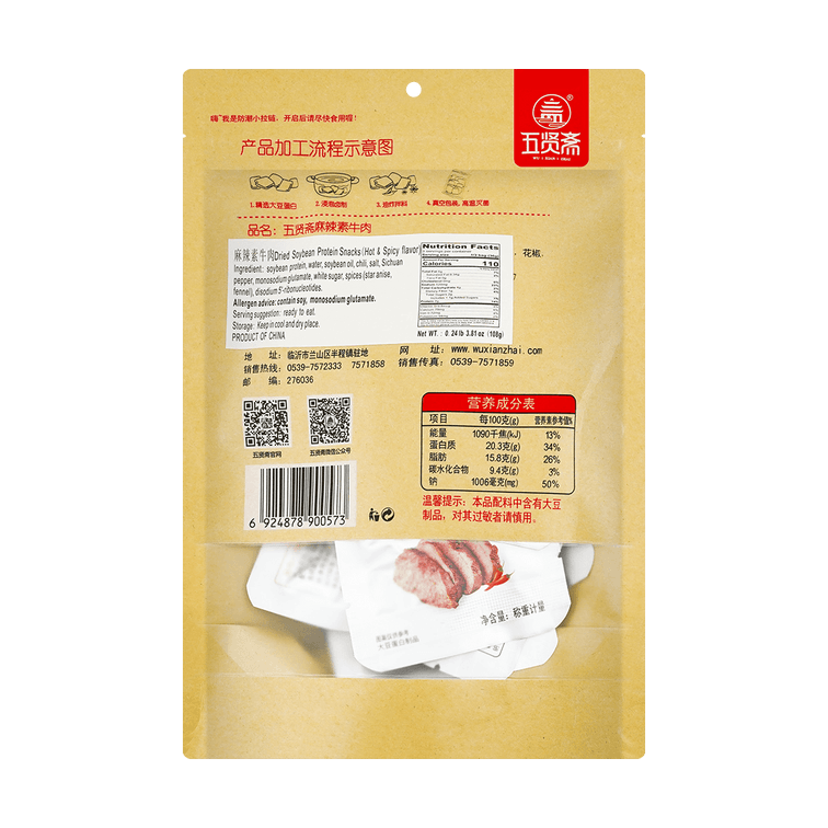 五贤斋 麻辣素牛肉 108g *3【3份超值装】
