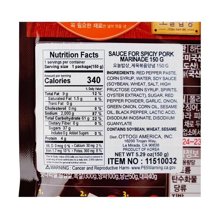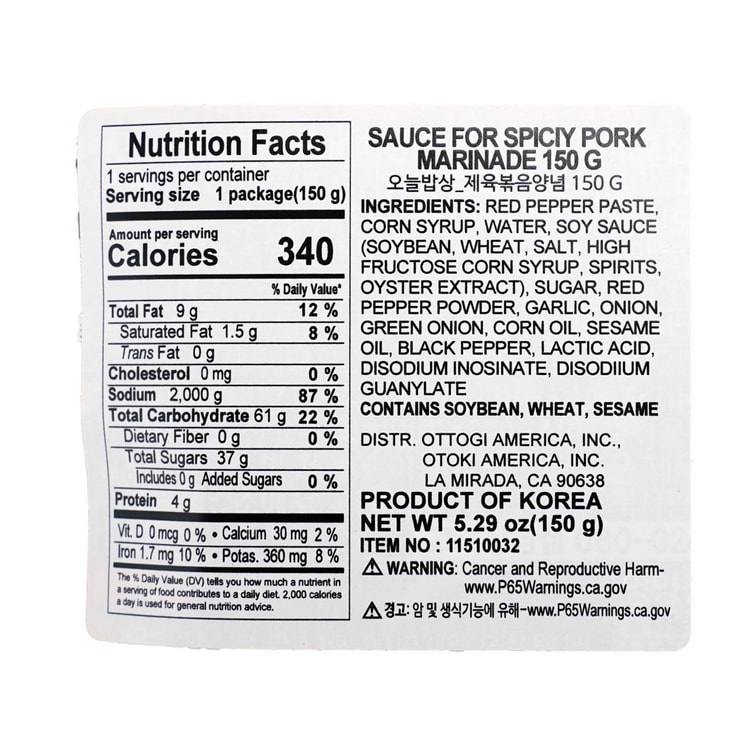 韩国OTTOGI / OTOKI不倒翁 韩式烤肉酱 辣炒五花肉酱料 辣味 150g