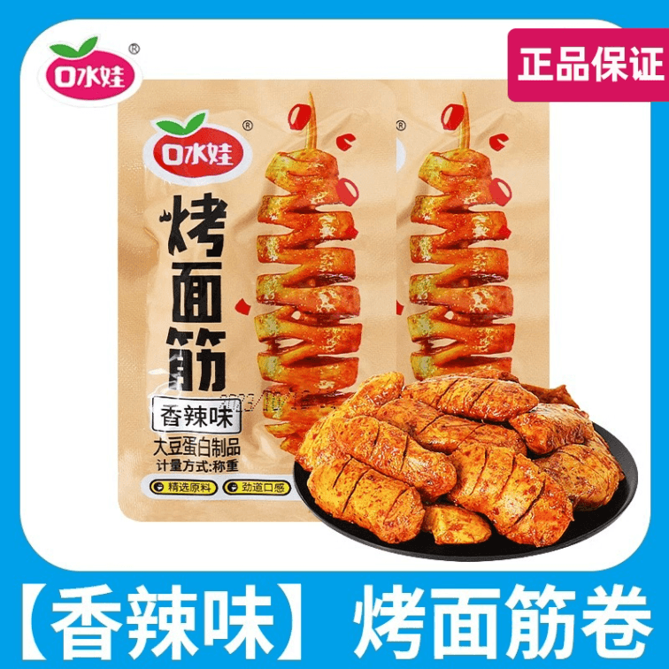 【中国直邮】 口水娃 烤面筋卷烧烤味烤面筋串网红解馋小零食宿舍追剧休闲小吃 香辣味13g*10包