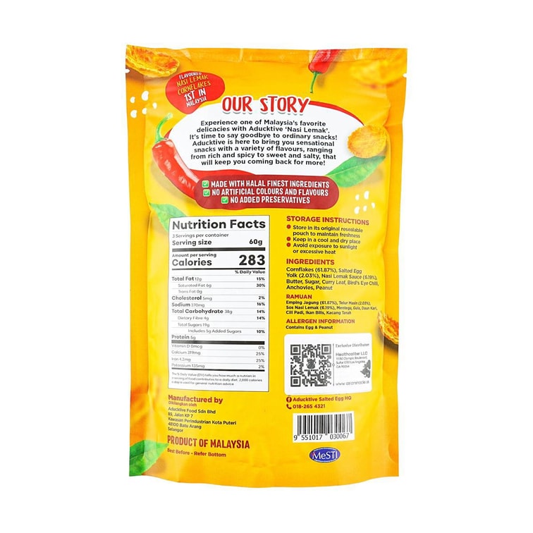 马来西亚ADUCKTIVE 香辣咸蛋黄椰浆玉米脆片 160g【配料表干净无添加】【东南亚旅游必买】