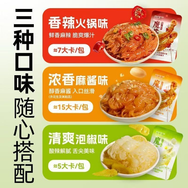 【中国直邮】 茉莉小铺 即食魔芋结零食 便携小包装 轻食解馋魔芋丝辣条3包 混合味(泡椒、麻酱、火锅味) 各1包