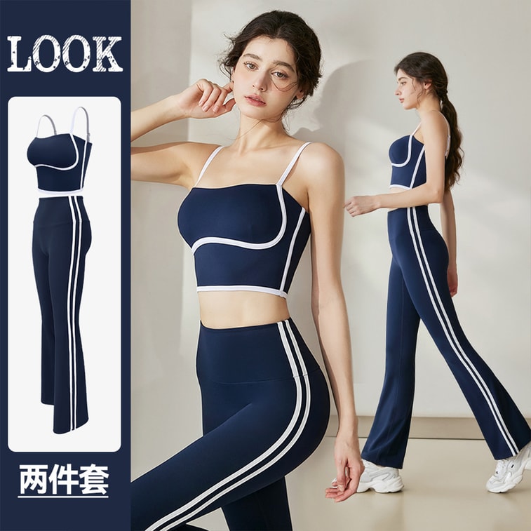 【中国直邮】 HSPM 运动套装 吊带背心 运动户外 高弹瑜伽服两件装 藏青蓝套装 L 1套装