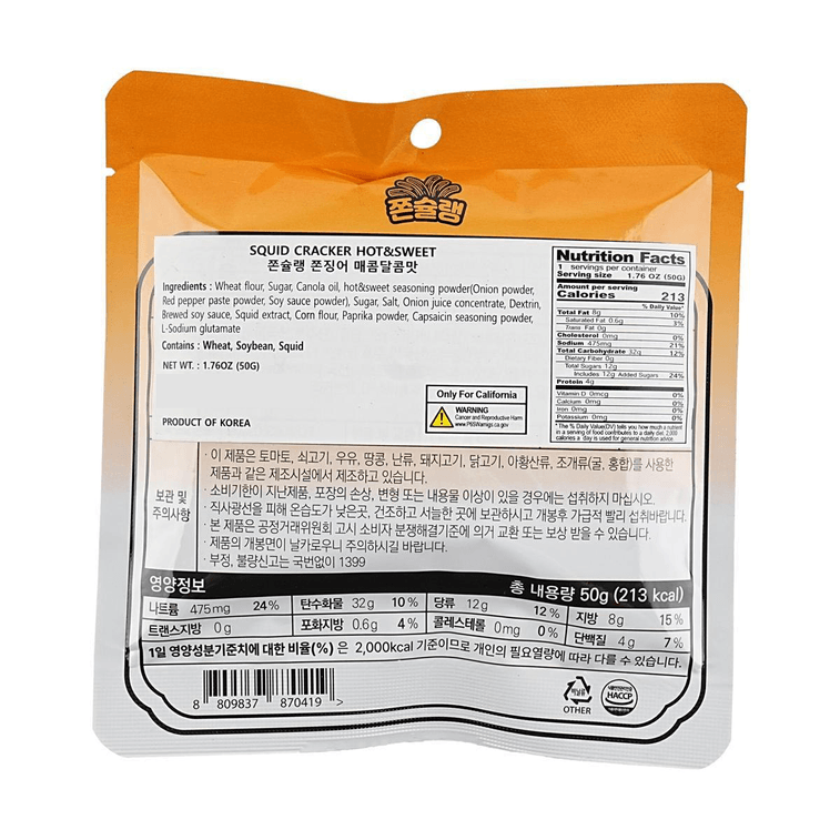 韩国JJONCHELIN 鱿鱼脆条 甜辣味 50g