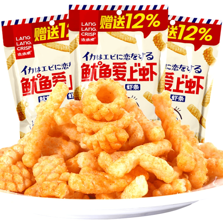 【中国直邮】 琅琅脆 鱿鱼爱上虾 32g*2包 网红爆款虾条鱿鱼酥卷解馋膨化零食休闲小吃