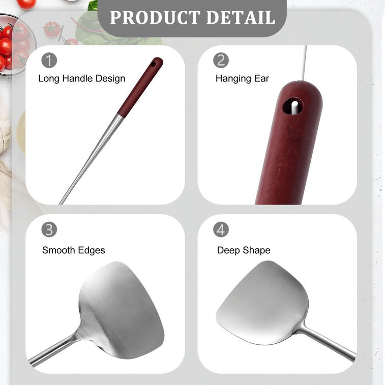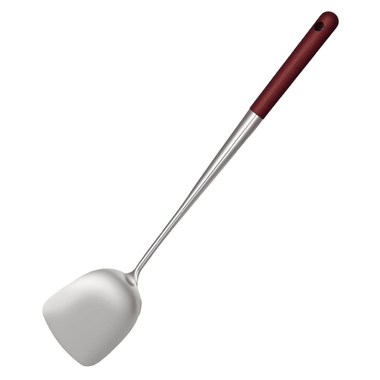 不锈钢铲子,炒锅铲木柄烹饪铲子 17英寸厨房用具,用于搅拌混合翻转烹饪