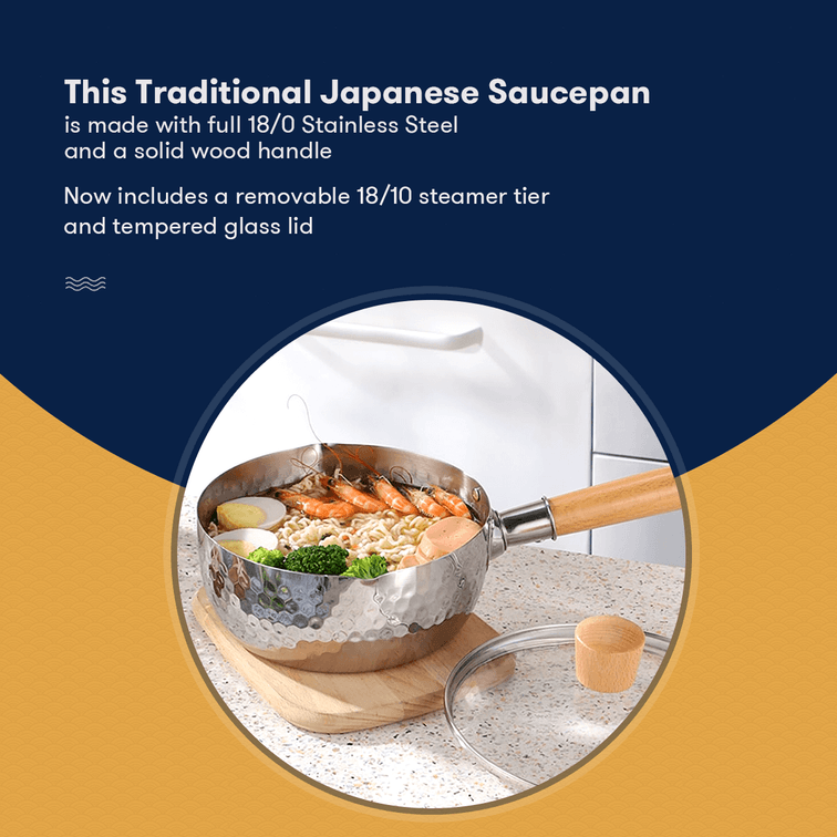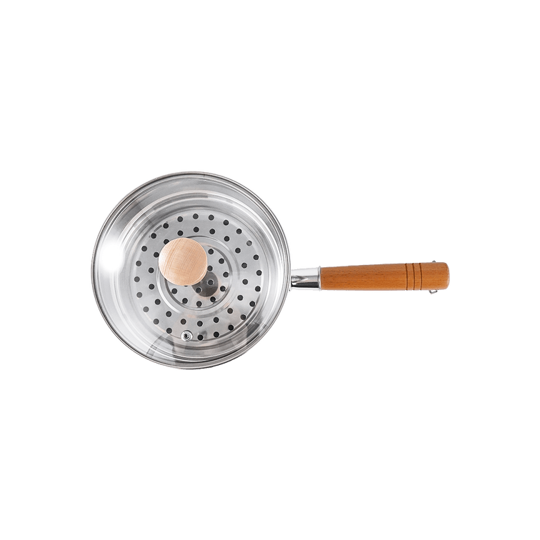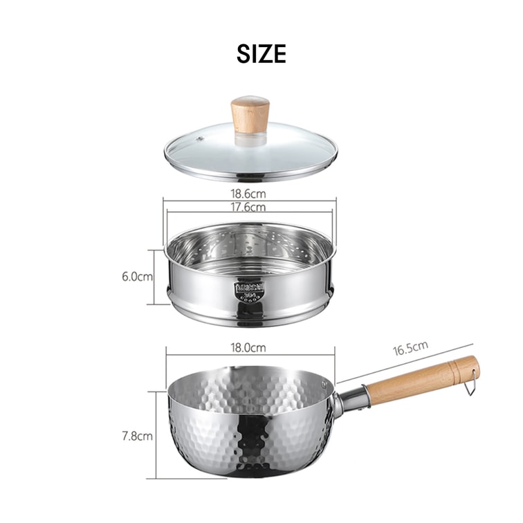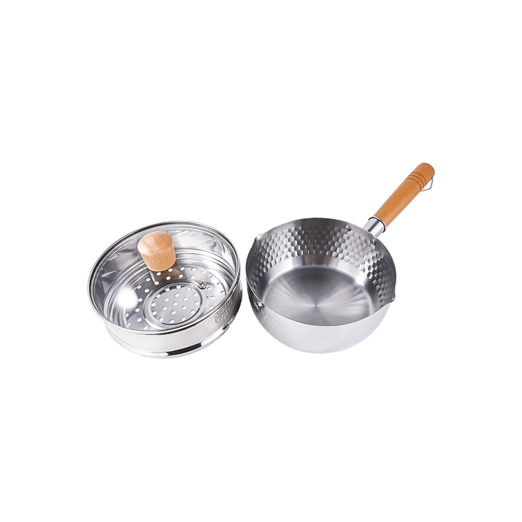 YANOSAKU矢之作 日式锤纹不锈钢雪平锅 一人食蒸煮两用小奶锅 18cm 附蒸屉 燃气电磁炉通用
