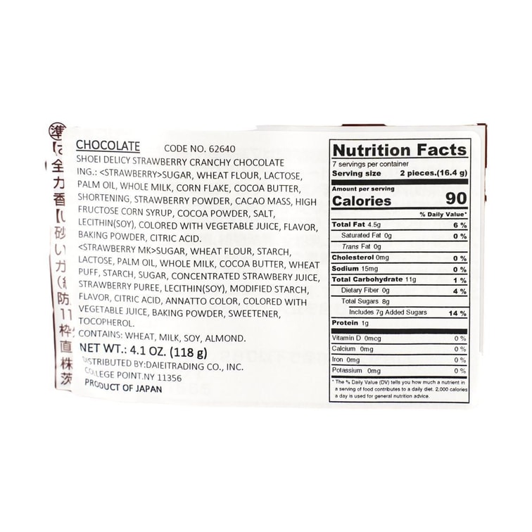 日本SHOEI DELICY正荣 草莓巧克力夹心威化脆 118g【松脆清爽饼干】