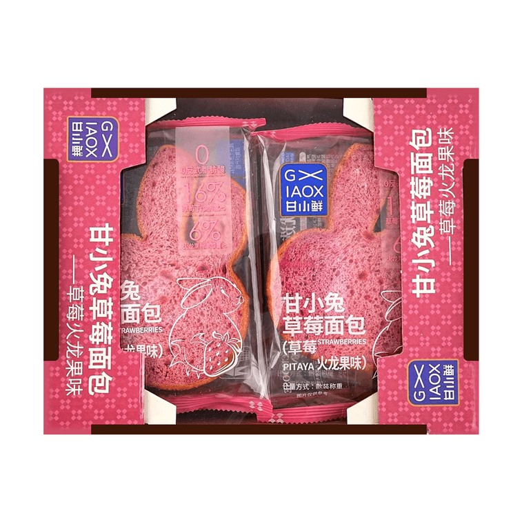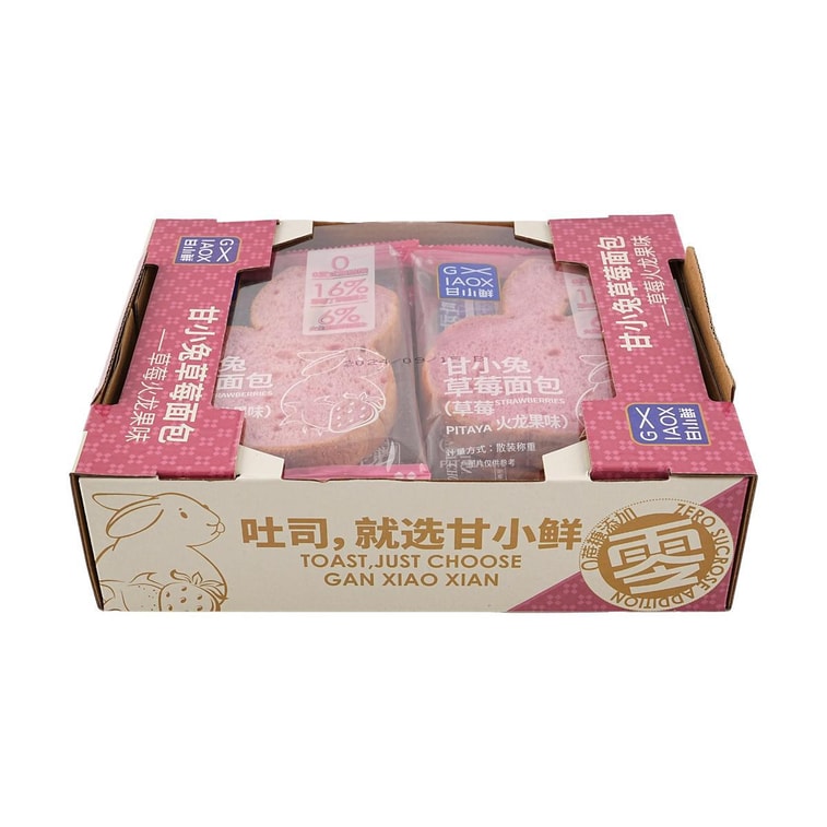甘小鲜 甘小兔面包 草莓火龙果味 盒装 6枚入 380g【0蔗糖】【可爱兔子造型吐司】