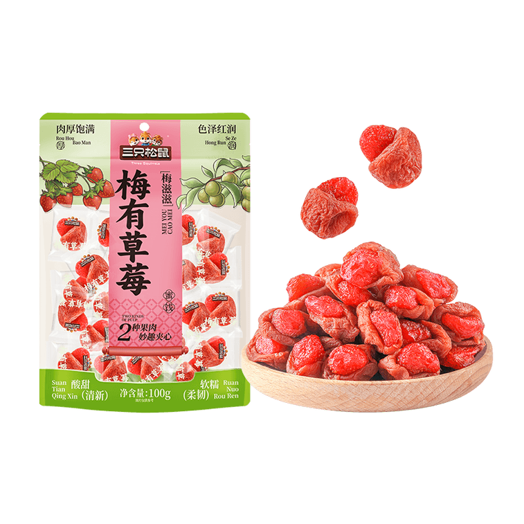 【中国直邮】 三只松鼠 梅子夹草莓100g即食混合蜜饯网红果脯果干办公室休闲零食
