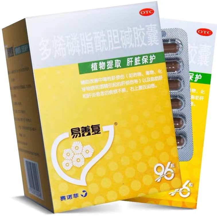 【中国直邮】易善复 多烯磷脂酰胆碱胶囊酒精肝脂肪肝保肝护肝药 96粒/盒(16天量)