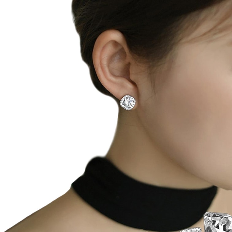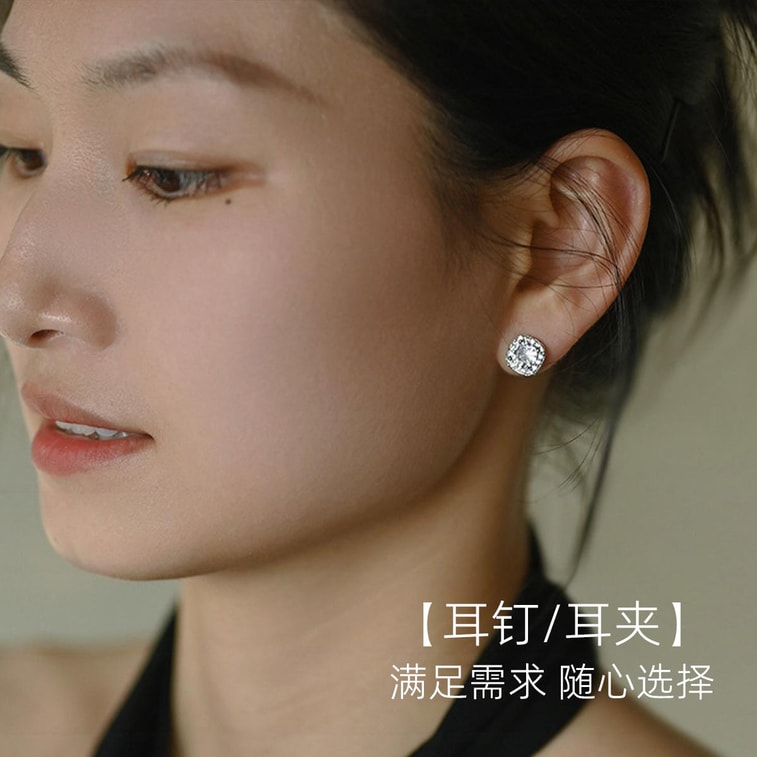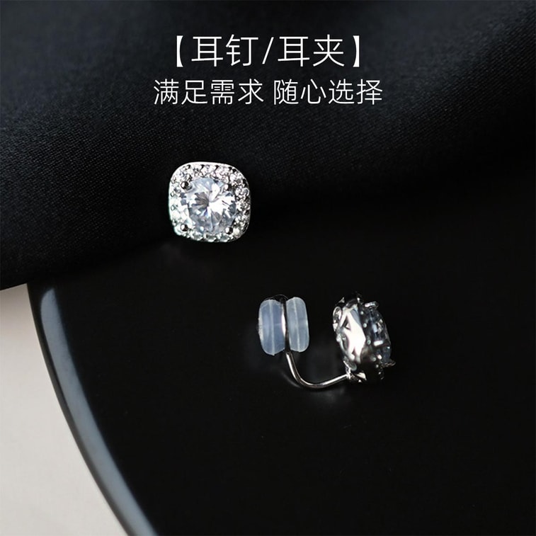 【中国直邮】 HSPM 「方糖钻石」~超闪锆石925银耳环无耳洞蚊香盘耳夹女 白钻耳夹F 1对