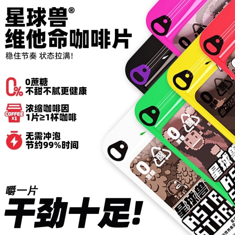 【中国直邮】 星球兽 零添加咖啡能量含片 元气生椰 33.6g 咖啡因耐力糖果 加班熬夜开车提神功能糖