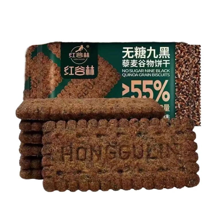 红谷林 无糖九黑藜麦谷物饼干 9种黑色食材黑全麦粉添加量≥55% 健康食养 谷物原香 口感丰富 208g