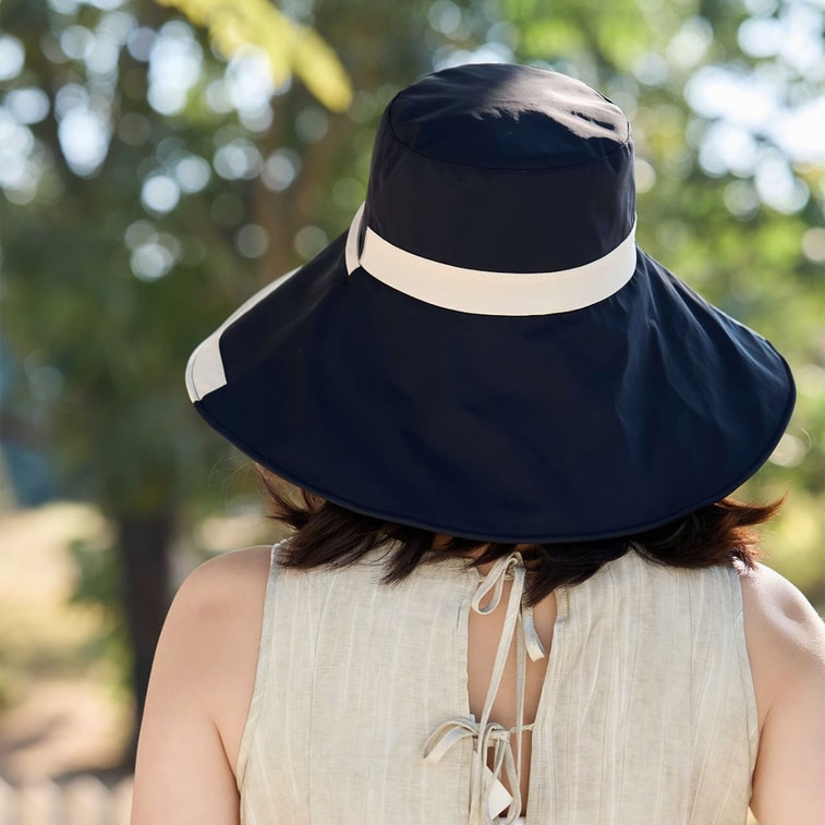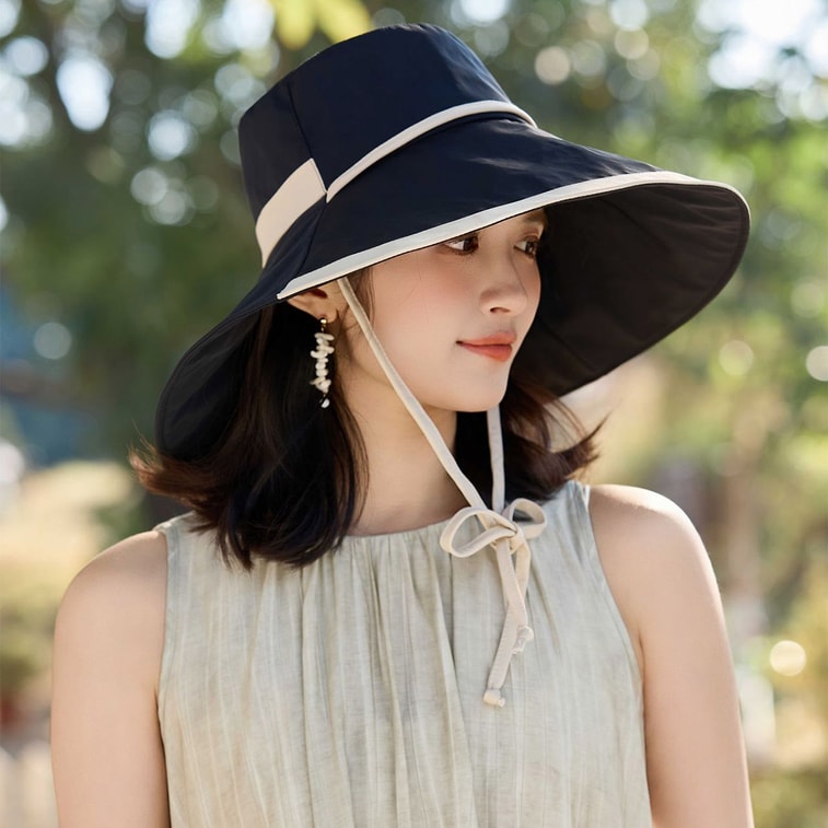 【中国直邮】 HSPM 夏季新款防晒帽 女韩版简约时尚沙滩太阳帽 大沿遮脸防紫外线渔夫帽 黑色F 1件装 | 亚米