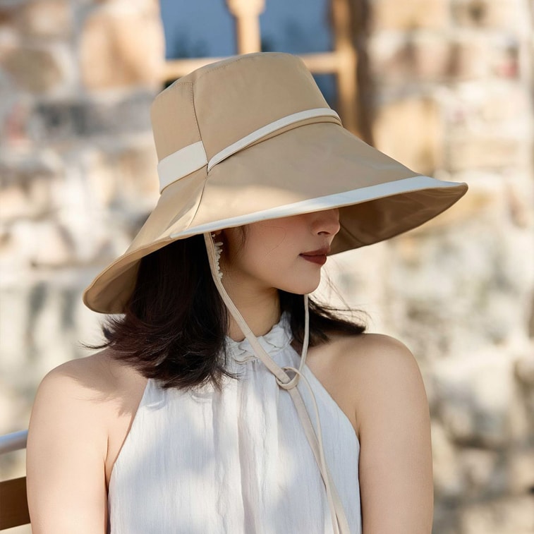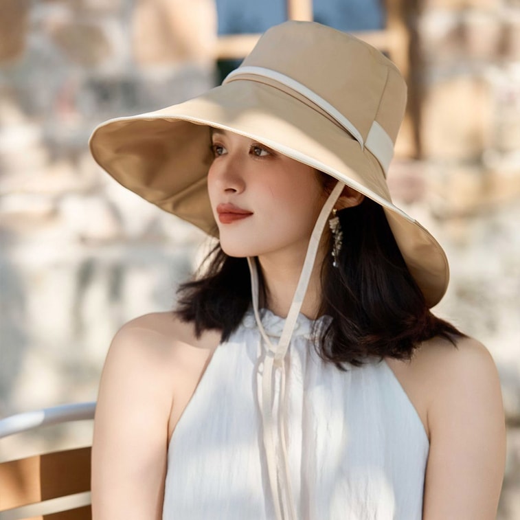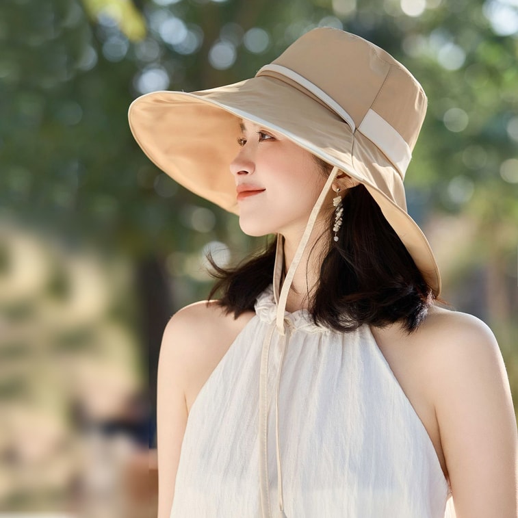 【中国直邮】 HSPM 夏季新款防晒帽 女韩版简约时尚沙滩太阳帽 大沿遮脸防紫外线渔夫帽 卡其色F 1件装 | 亚米