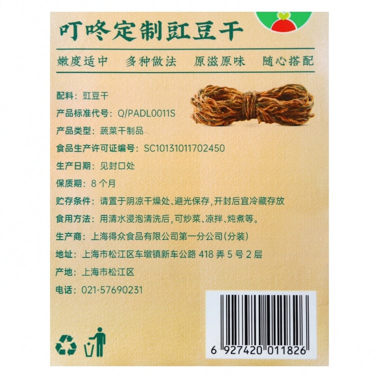 【中国直邮】 叮咚买菜 日晒豇豆干 60克