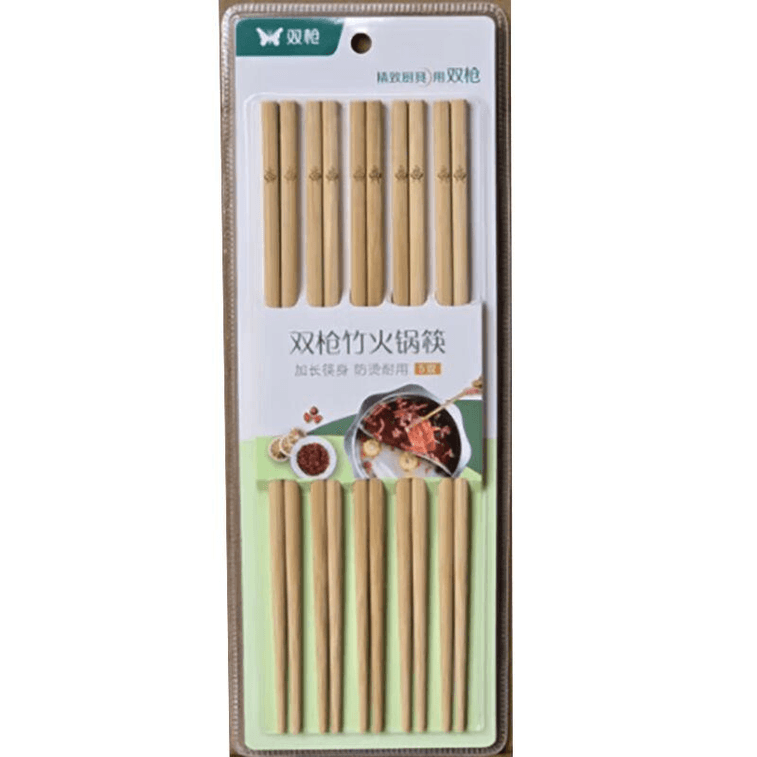 双枪 无漆竹筷竹制火锅筷捞面筷加长30厘米5双装
