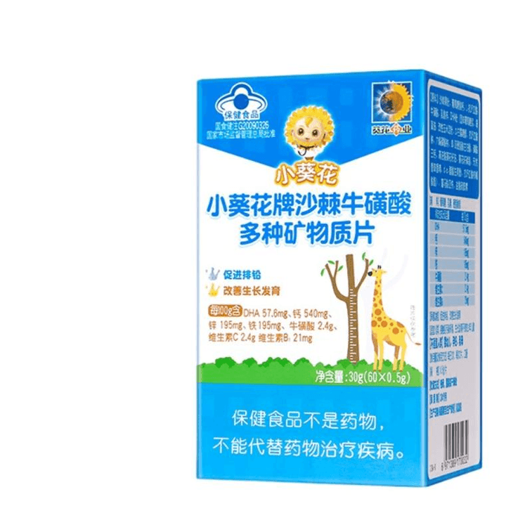 【中国直邮】葵花药业 小葵花沙棘牛磺酸多种矿物质片多维生素青少年成长30g*1盒 | 亚米