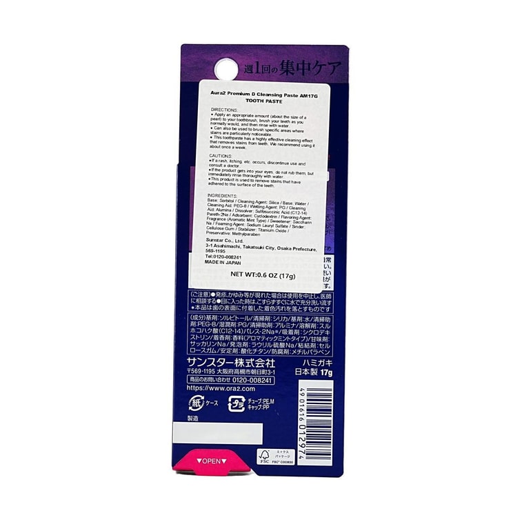 日本SUNSTAR ORA2 皓乐齿 高强度集中护理牙膏 去渍亮白 一周一次集中护理 #薰衣草薄荷 17g