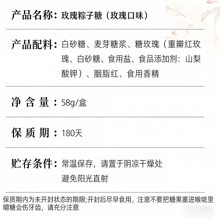 乾生元 玫瑰味粽子糖 花香浓郁 传统古法制作 苏州特产老式正宗麦芽糖 58g 1盒