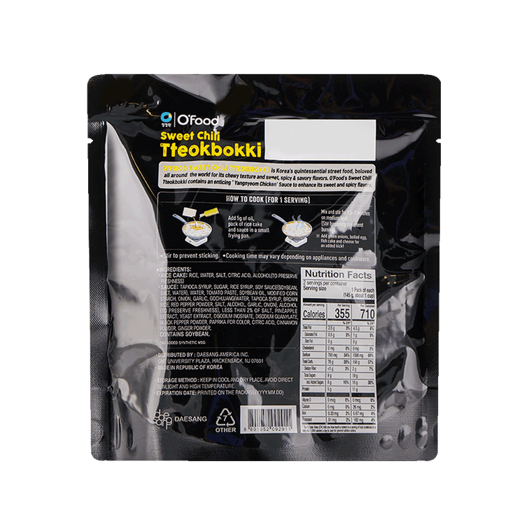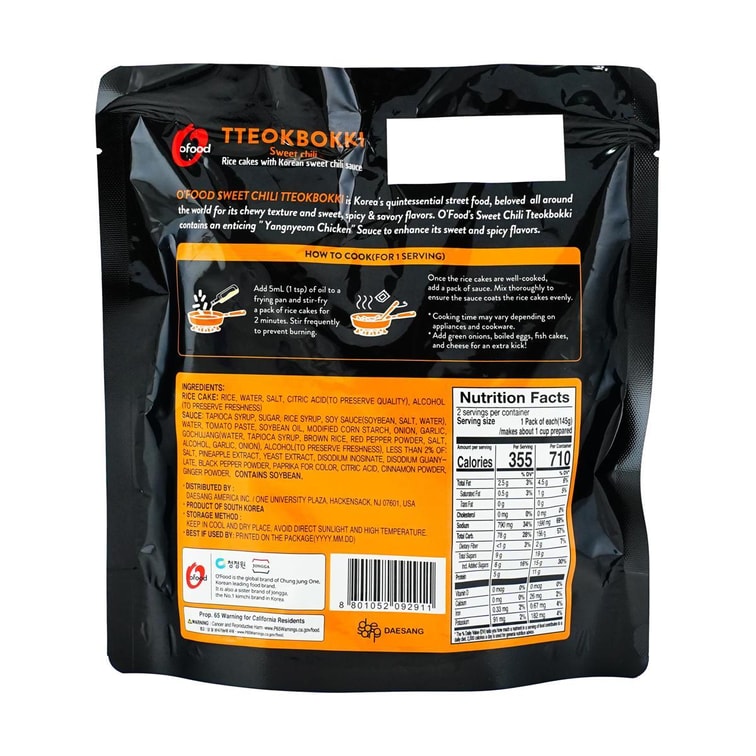 韩国O'FOOD清净园 韩式炒年糕条 甜辣味 2人份 290g【附带酱料包】