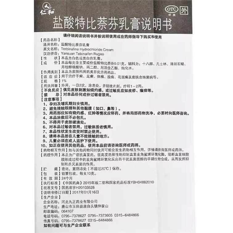 【美国现货秒发】仁和 盐酸特比萘芬乳膏手足廯体廯股癣花斑癣皮肤念珠菌脚气 10g/盒